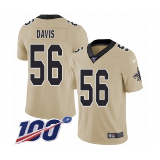 >Men's New Orleans Saints #56 DeMario Davis Limited Gold Inverted Legend 100th Season Football Jersey