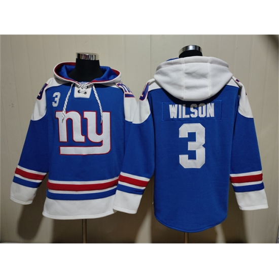 >Men's New York Giants #3 Russell Wilson Blue Ageless Must-Have Lace-Up Pullover Hoodie