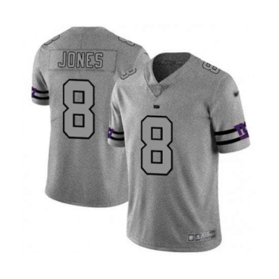 Men's New York Giants #8 Daniel Jones Limited Gray Team Logo Gridiron Football Jersey