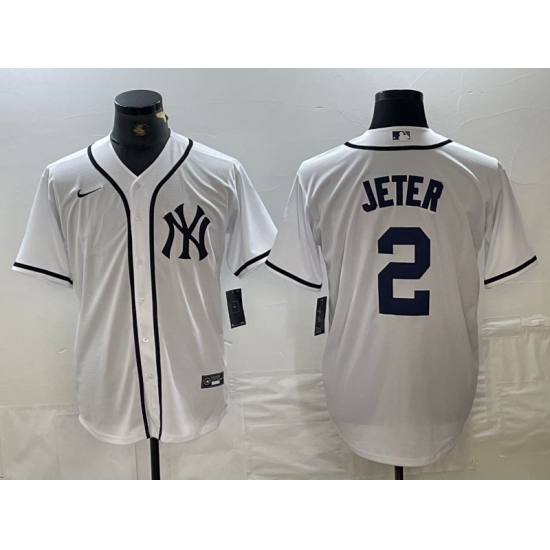 Men's New York Yankees #2 Derek Jeter White Fashion Cool Base Jersey