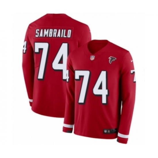 >Men's Nike Atlanta Falcons #74 Ty Sambrailo Limited Red Therma Long Sleeve NFL Jersey