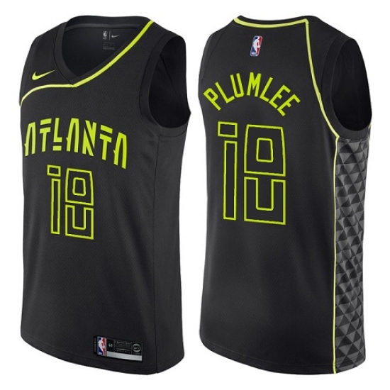 >Men's Nike Atlanta Hawks #18 Miles Plumlee Authentic Black NBA Jersey - City Edition