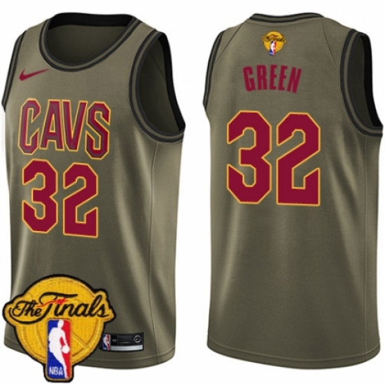Men's Nike Cleveland Cavaliers #32 Jeff Green Swingman Green Salute to Service 2018 NBA Finals Bound NBA Jersey
