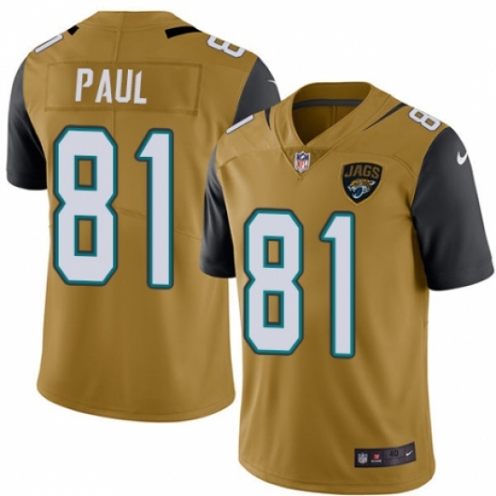 >Men's Nike Jacksonville Jaguars #81 Niles Paul Limited Gold Rush Vapor Untouchable NFL Jersey