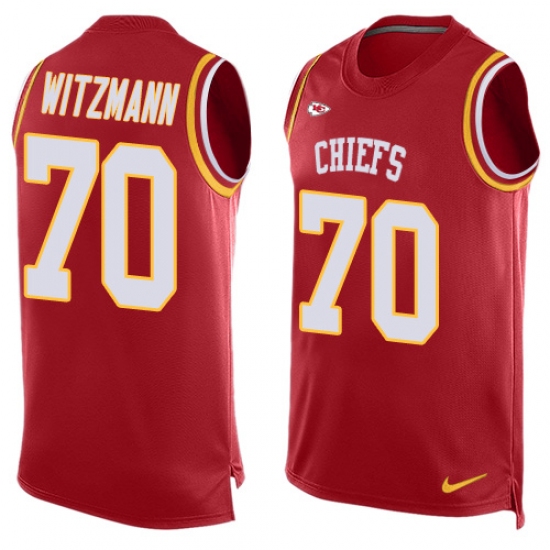 Home>NFL>Kansas City Chiefs>Bryan Witzmann>Men's Nike Kansas City Chiefs #70 Bryan Witzmann Limited Red Player Name & Number Tank Top NFL Jersey