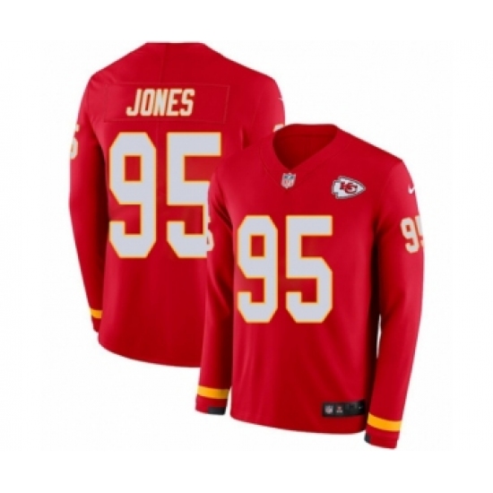 Men's Nike Kansas City Chiefs #95 Chris Jones Limited Red Therma Long Sleeve NFL Jersey