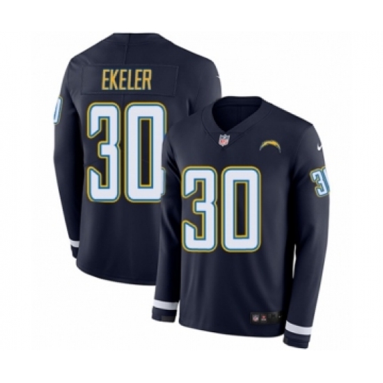 >Men's Nike Los Angeles Chargers #30 Austin Ekeler Limited Navy Blue Therma Long Sleeve NFL Jersey