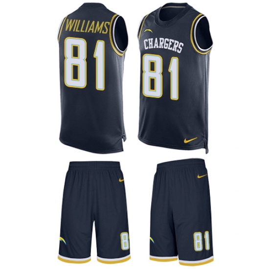 Men's Nike Los Angeles Chargers #81 Mike Williams Limited Navy Blue Tank Top Suit NFL Jersey