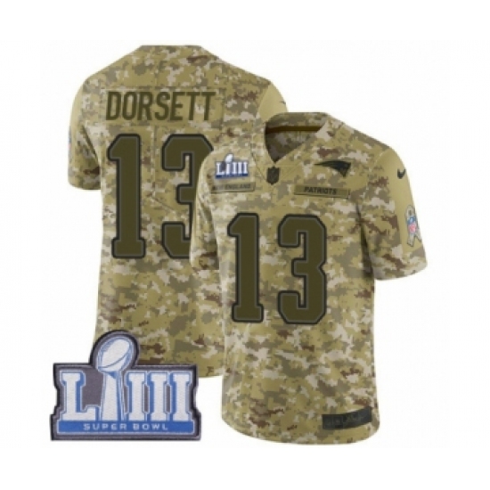 Men's Nike New England Patriots #13 Phillip Dorsett Limited Camo 2018 Salute to Service Super Bowl LIII Bound NFL Jersey