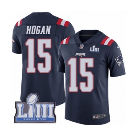 Men's Nike New England Patriots #15 Chris Hogan Limited Navy Blue Rush Vapor Untouchable Super Bowl LIII Bound NFL Jersey