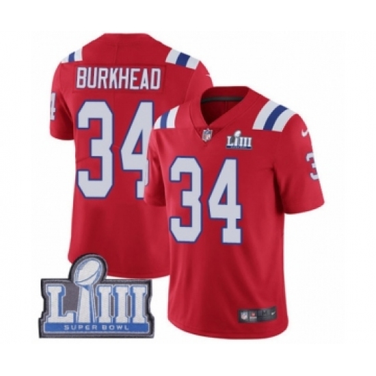 >Men's Nike New England Patriots #34 Rex Burkhead Red Alternate Vapor Untouchable Limited Player Super Bowl LIII Bound NFL Jersey
