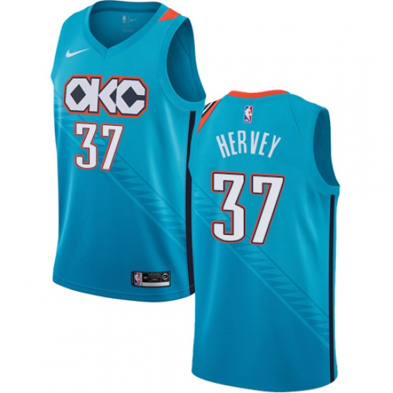 Men's Nike Oklahoma City Thunder #37 Kevin Hervey Swingman Turquoise NBA Jersey - City Edition