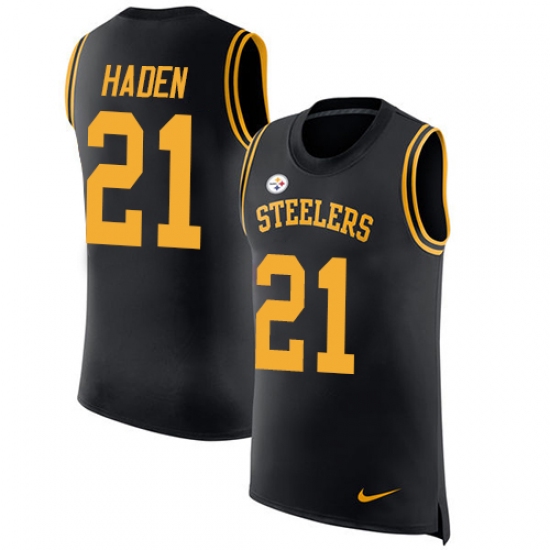 Home>NFL>Pittsburgh Steelers>Joe Haden>Men's Nike Pittsburgh Steelers #21 Joe Haden Black Rush Player Name & Number Tank Top NFL Jersey