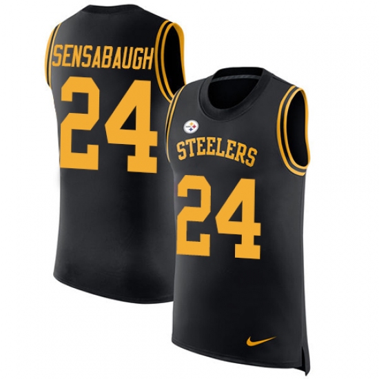 Home>NFL>Pittsburgh Steelers>Coty Sensabaugh>Men's Nike Pittsburgh Steelers #24 Coty Sensabaugh Limited Black Rush Player Name & Number Tank Top NFL Jersey