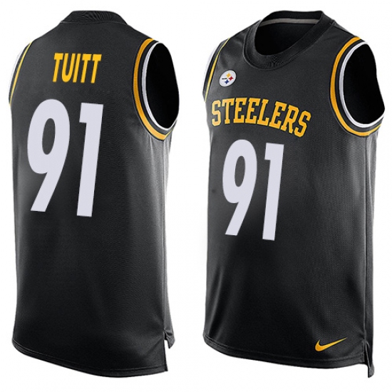 Men's Nike Pittsburgh Steelers #91 Stephon Tuitt Limited Black Player Name & Number Tank Top NFL Jersey
