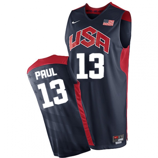 Men's Nike Team USA #13 Chris Paul Authentic Navy Blue 2012 Olympics Basketball Jersey