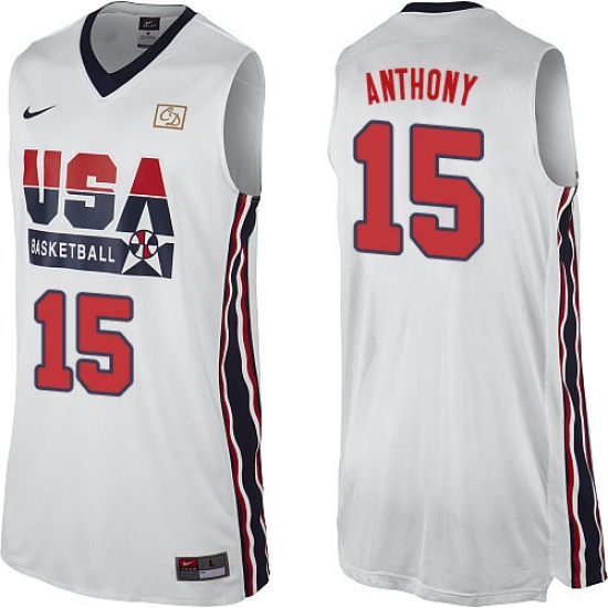 Men's Nike Team USA #15 Carmelo Anthony Authentic White 2012 Olympic Retro Basketball Jersey