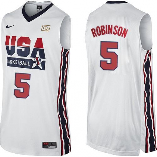 Men's Nike Team USA #5 David Robinson Swingman White 2012 Olympic Retro Basketball Jersey