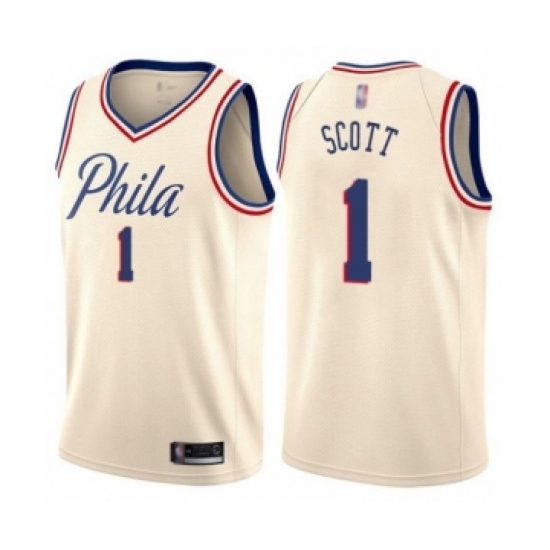 Men's Philadelphia 76ers #1 Mike Scott Authentic Cream Basketball Jersey - City Edition