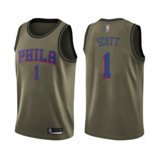 Men's Philadelphia 76ers #1 Mike Scott Swingman Green Salute to Service Basketball Jersey