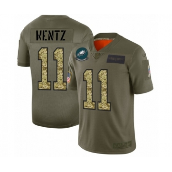 >Men's Philadelphia Eagles #11 Carson Wentz 2019 Olive Camo Salute to Service Limited Jersey