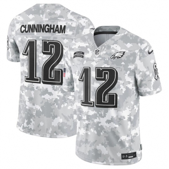 >Men's Philadelphia Eagles #12 Randall Cunningham 2024 F.U.S.E Arctic Camo Salute To Service Limited Stitched Football Jersey