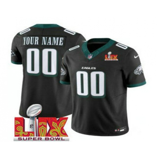 Men's Philadelphia Eagles Customized Black 2025 Super Bowl LIX FUSE Vapor Limited Jersey