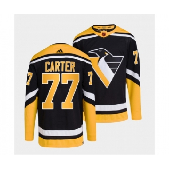>Men's Pittsburgh Penguins #77 Jeff Carter Black 2022 Reverse Retro Stitched Jersey