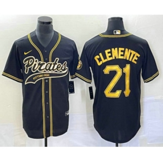 Men's Pittsburgh Pirates #21 Roberto Clemente Black Cool Base Stitched Baseball Jersey