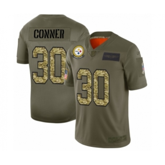 >Men's Pittsburgh Steelers #30 James Conner 2019 Olive Camo Salute to Service Limited Jersey