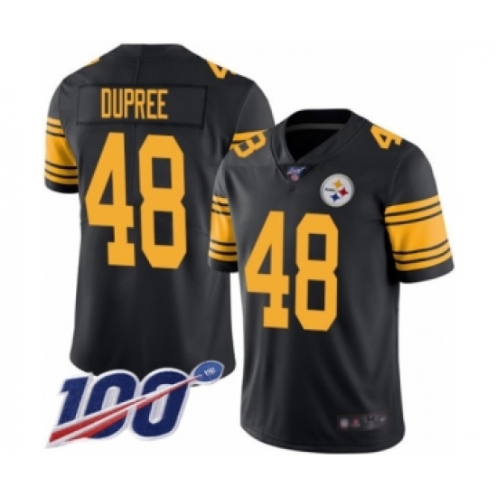 >Men's Pittsburgh Steelers #48 Bud Dupree Limited Black Rush Vapor Untouchable 100th Season Football Jersey