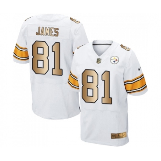 Men's Pittsburgh Steelers #81 Jesse James Elite White Gold Football Jersey