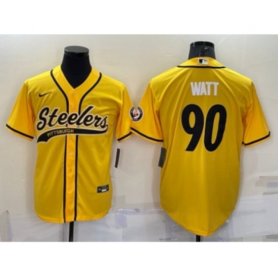 Men's Pittsburgh Steelers #90 T.J. Watt Gold With Patch Cool Base Stitched Baseball Jersey