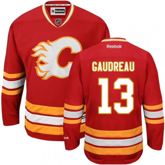 Home>NHL>Calgary Flames>Johnny Gaudreau>Men's Reebok Calgary Flames #13 Johnny Gaudreau Premier Red Third NHL Jersey