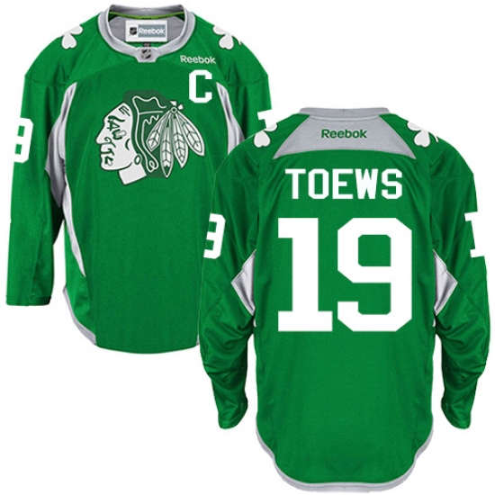 Men's Reebok Chicago Blackhawks #19 Jonathan Toews Authentic Green Practice NHL Jersey