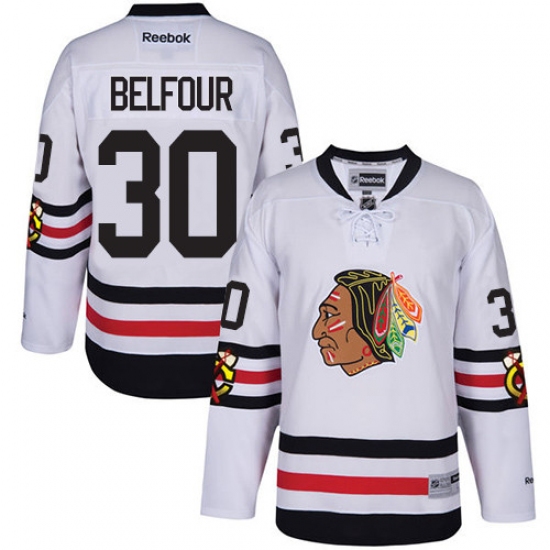 Men's Reebok Chicago Blackhawks #30 ED Belfour Premier White 2017 Winter Classic NHL Jersey