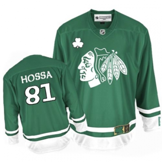 Men's Reebok Chicago Blackhawks #81 Marian Hossa Authentic Green St Patty's Day NHL Jersey