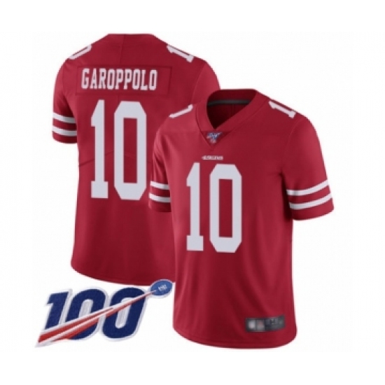Men's San Francisco 49ers #10 Jimmy Garoppolo Red Team Color Vapor Untouchable Limited Player 100th Season Football Jersey