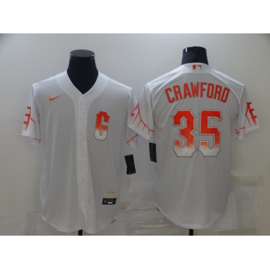 >Men's San Francisco Giants #35 Brandon Crawford White 2021 City Connect Replica Player Jersey