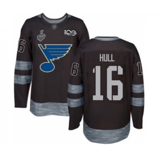 Men's St. Louis Blues #16 Brett Hull Authentic Black 1917-2017 100th Anniversary 2019 Stanley Cup Final Bound Hockey Jersey