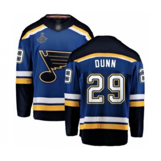 >Men's St. Louis Blues #29 Vince Dunn Fanatics Branded Royal Blue Home Breakaway 2019 Stanley Cup Champions Hockey Jersey