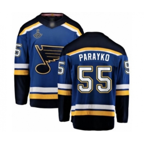 >Men's St. Louis Blues #55 Colton Parayko Fanatics Branded Royal Blue Home Breakaway 2019 Stanley Cup Champions Hockey Jersey