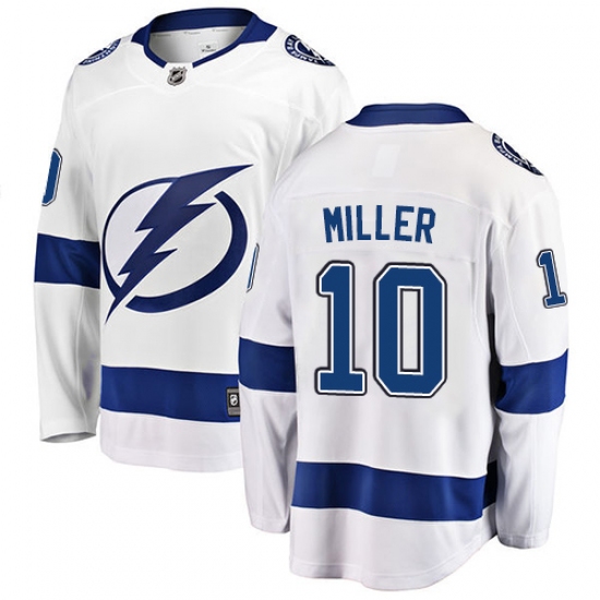 >Men's Tampa Bay Lightning #10 J.T. Miller Fanatics Branded White Away Breakaway NHL Jersey