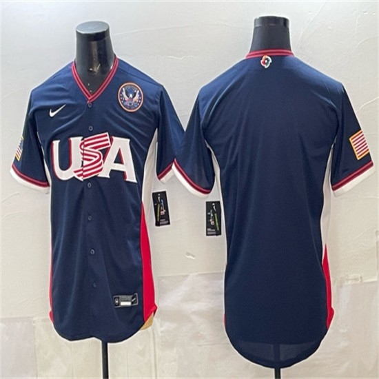 >Men's USA Baseball Blank Navy 2026 World Baseball Classic United States 250th Anniversary Road Stadium Stitched Jersey