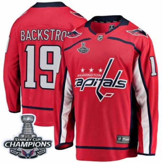 Men's Washington Capitals #19 Nicklas Backstrom Fanatics Branded Red Home Breakaway 2018 Stanley Cup Final Champions NHL Jersey