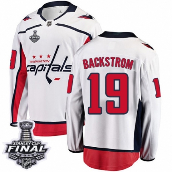 Men's Washington Capitals #19 Nicklas Backstrom Fanatics Branded White Away Breakaway 2018 Stanley Cup Final NHL Jersey
