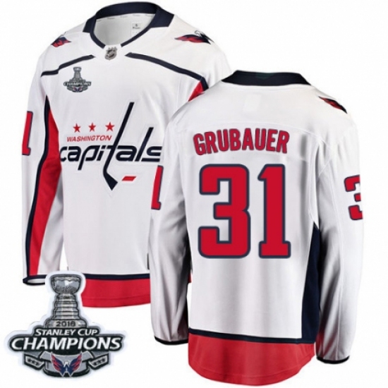 Men's Washington Capitals #31 Philipp Grubauer Fanatics Branded White Away Breakaway 2018 Stanley Cup Final Champions NHL Jersey