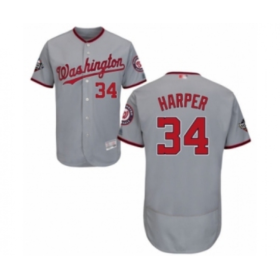 Men's Washington Nationals #34 Bryce Harper Grey Road Flex Base Authentic Collection 2019 World Series Bound Baseball Jersey