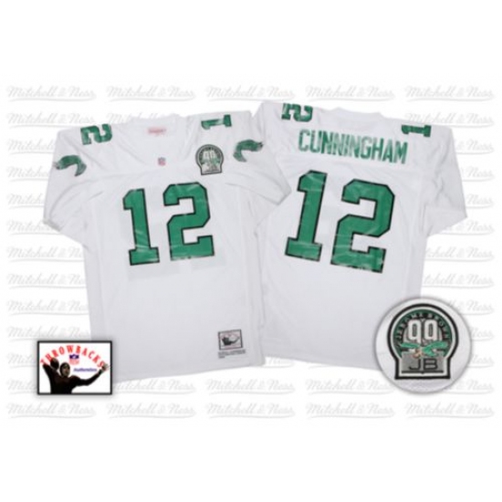 Feel like part of your favorite team by wearing this NFL® Mitchell And Ness Philadelphia Eagles #12 Randall Cunningham Authentic Jersey White Authentic NFL Jersey, made of thick, high-quality Pro-Brite fabric for a genuine gridiron look. The players number which 100% stitched is displayed in tackle twill on the chest, back and sleeves, along with the team name on the front. The players name which 100% stitched is displayed on a sewn-down nameplate at the back. 100% Pro-Brite nylon and 100% Pro-Brite polyester for body, 100% lycratalic spandex dazzle for Side Panels/Collar/Cuffs, NFL® Equipment patch sewn on the bottom of the front collar or fabric insert, NFL® Equipment jock tag with numeric sizing is applied to the lower left bottom of the jersey, Officially licensed.