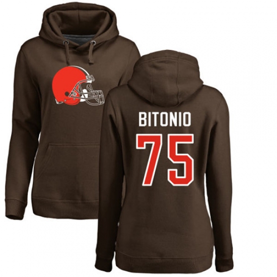 >NFL Women's Nike Cleveland Browns #75 Joel Bitonio Brown Name & Number Logo Pullover Hoodie